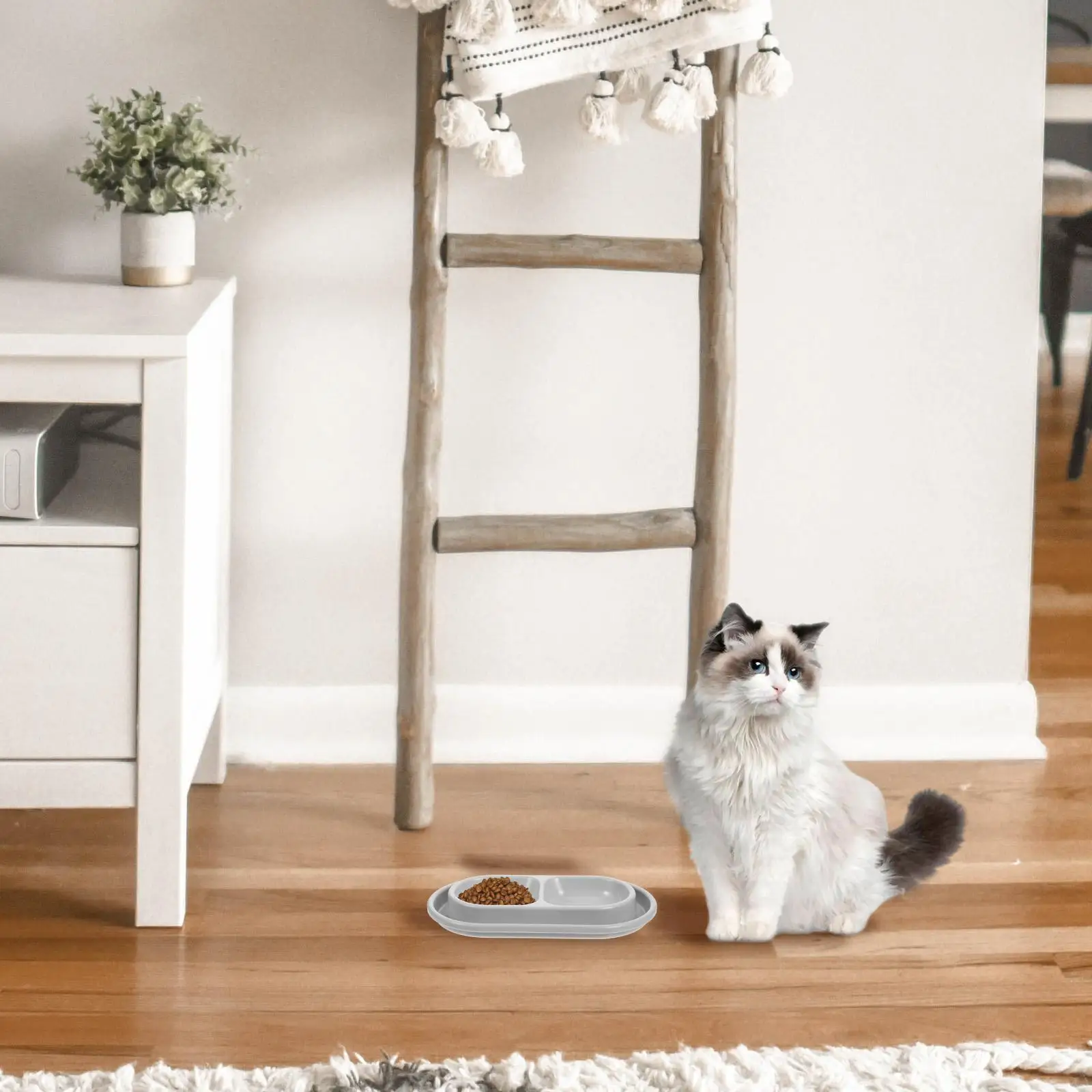 Introducing our innovative pet double bowl with ant-proof design, for ensuring the and safety of your pet's food. The dual-bowl setup allows you to feed your pet both food and water simultaneously. Its sleek gray appearance complements any home decor, making it a stylish addition to your pet's feeding area.