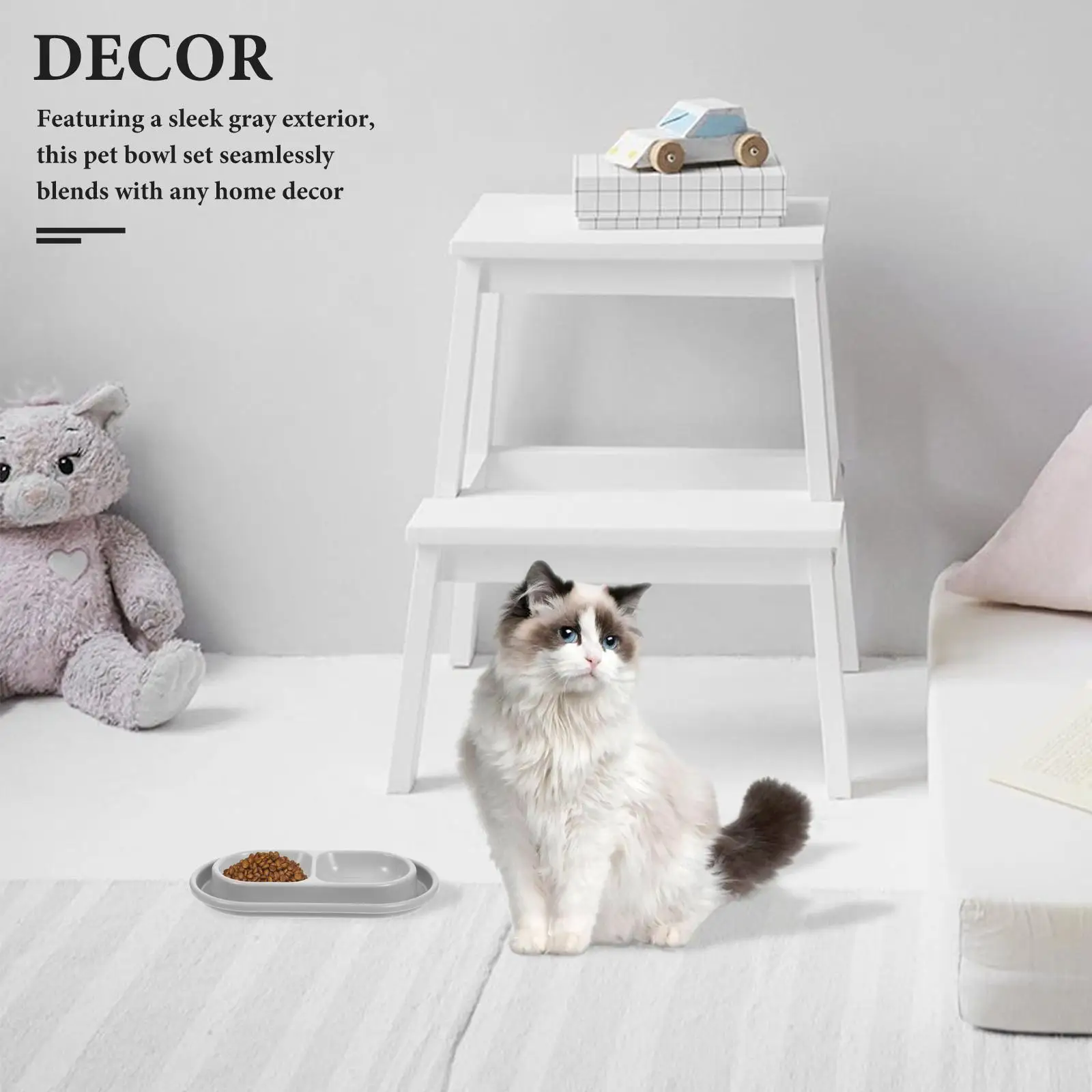-Featuring a sleek gray exterior, this pet bowl set seamlessly blends with any home decor, adding a touch of elegance.